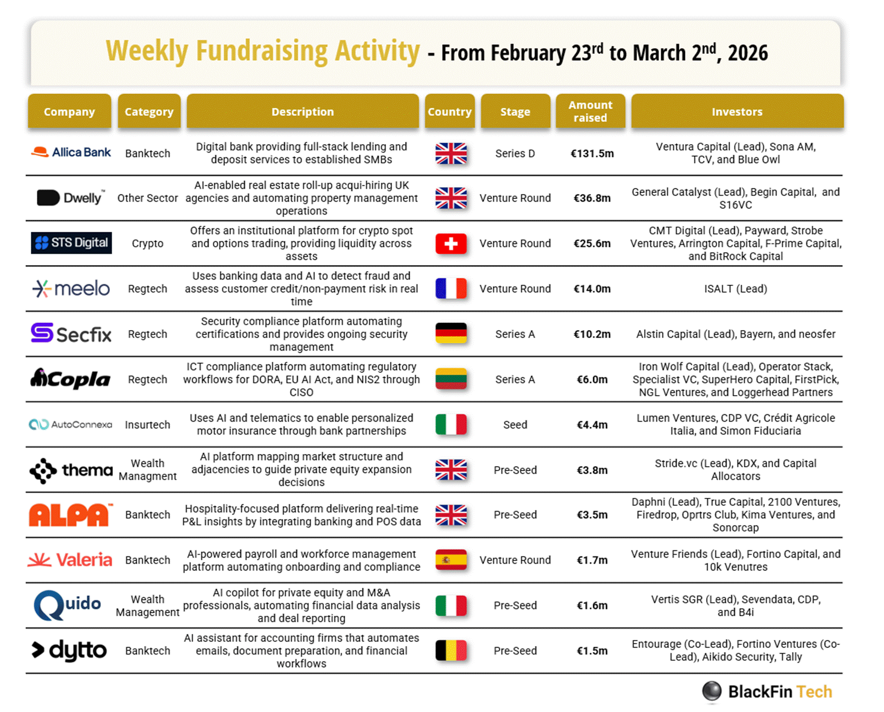 Over the last week, there were eleven fintech deals in Europe, totaling €237.3m in disclosed funding, including four transactions in the UK, one in France, one in Germany, one in Italy, one in Belgium, one in Spain, one in Switzerland, and one in Lithuania.